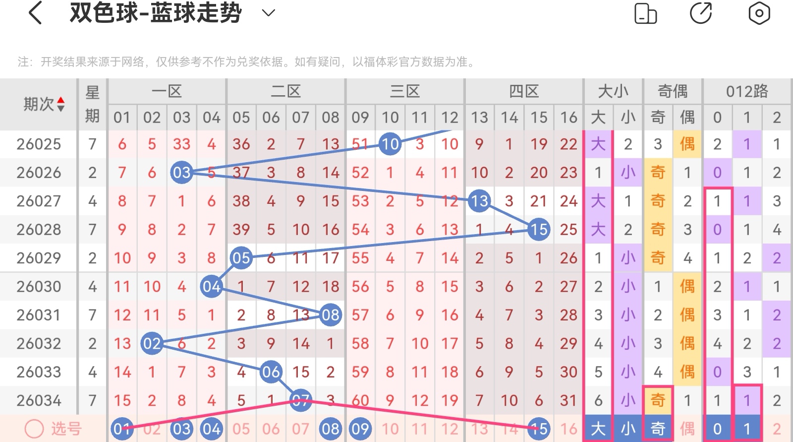 双色球第26035期基本走势分析(上期会员文章龙头中,重码二中二,大底中3+0)