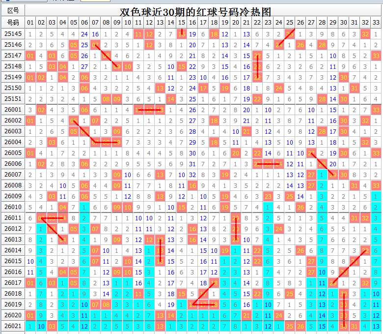 双色球26022期冷热号码及出号趋势分析(具体号码可参见上图或会员文章的觅宝图):
