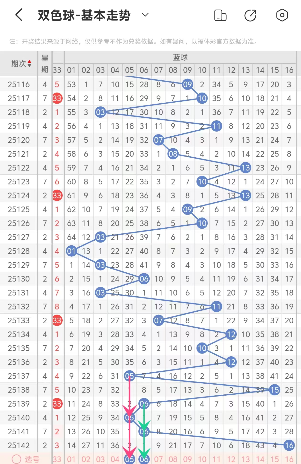 上图的05是隔两期开隔两期开规律趋势,所以选择05,06是隔一期开隔一期开的规律,那么这一期的蓝球就选择05,06