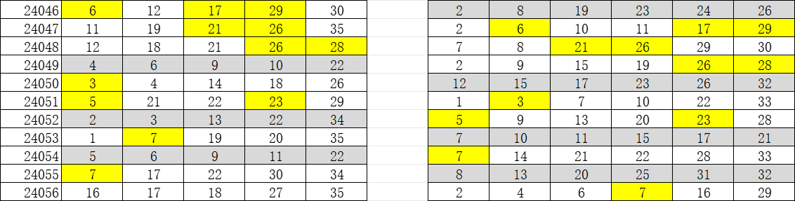 以上各小区号码数量是按照23001期至24055期最有可能出号数量范围,适用于复式票及拖胆票。