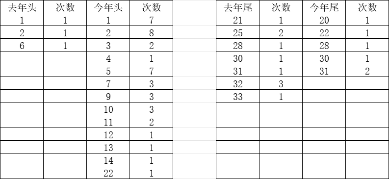 龙头尾尽量选取表格内号码,准确率70%以上。