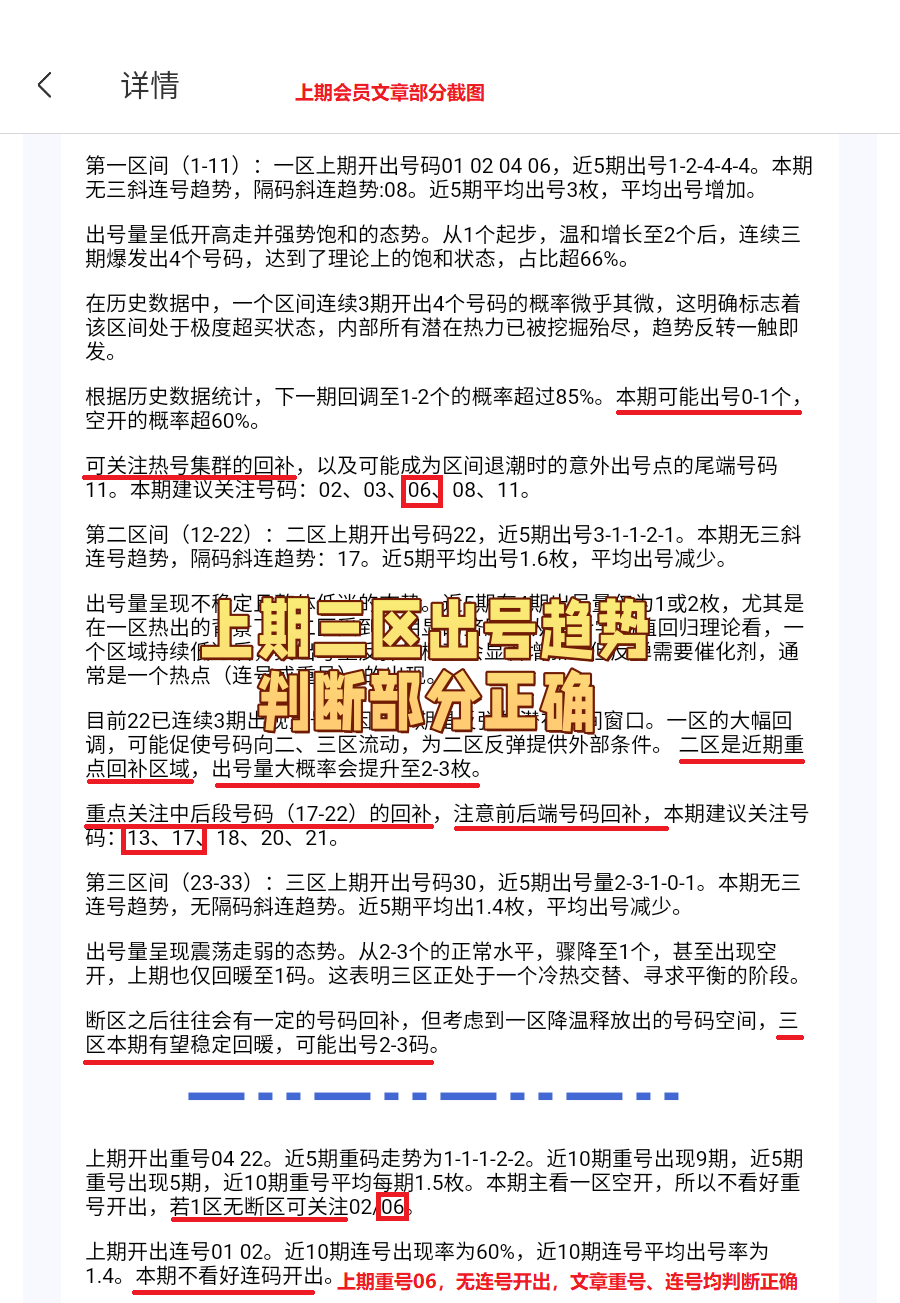 会员文章每个区间给出更详细的分析,说明整体走势的最新趋势,重号和连号均有推荐。