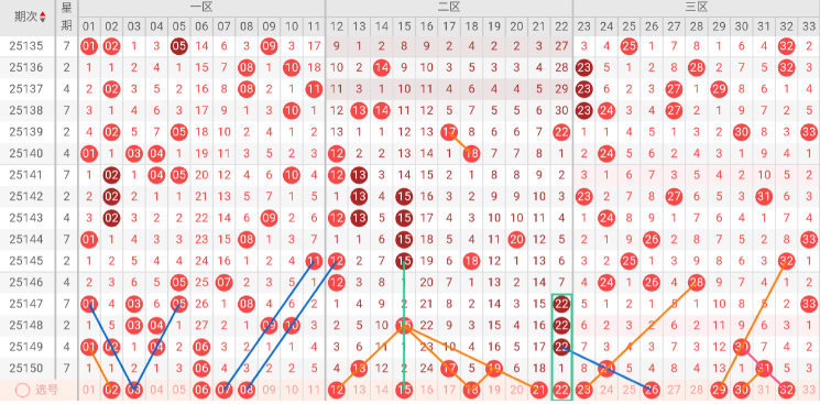 根据以上特点,我们对双色球第25151期进行如下分析: