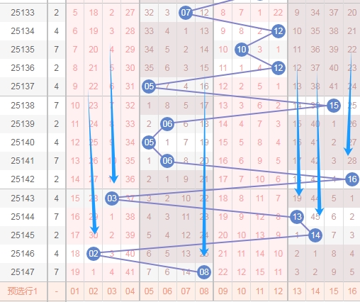 根据上面的分析,本期可以关注遗漏周期小的数字也就是上面标注出来的数字02 03 06 08 13 14 16。