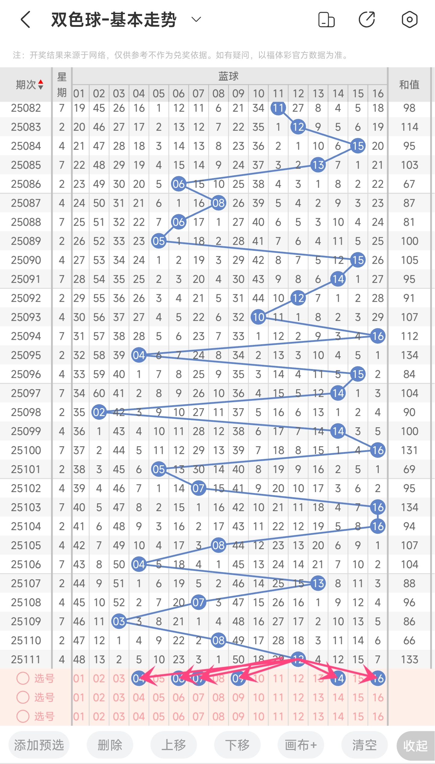 蓝球推荐:04,06,07,09,14,16。