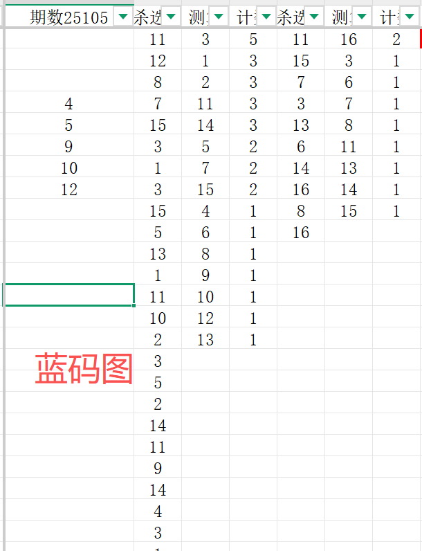 首先可以看一下蓝码的对比结果通过两个图表数据的对比,我们把蓝码的范围确定为4 5 9 10 12