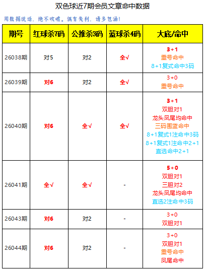 结合以上分析,茯苓子对第26045期双色球号码推荐如下: