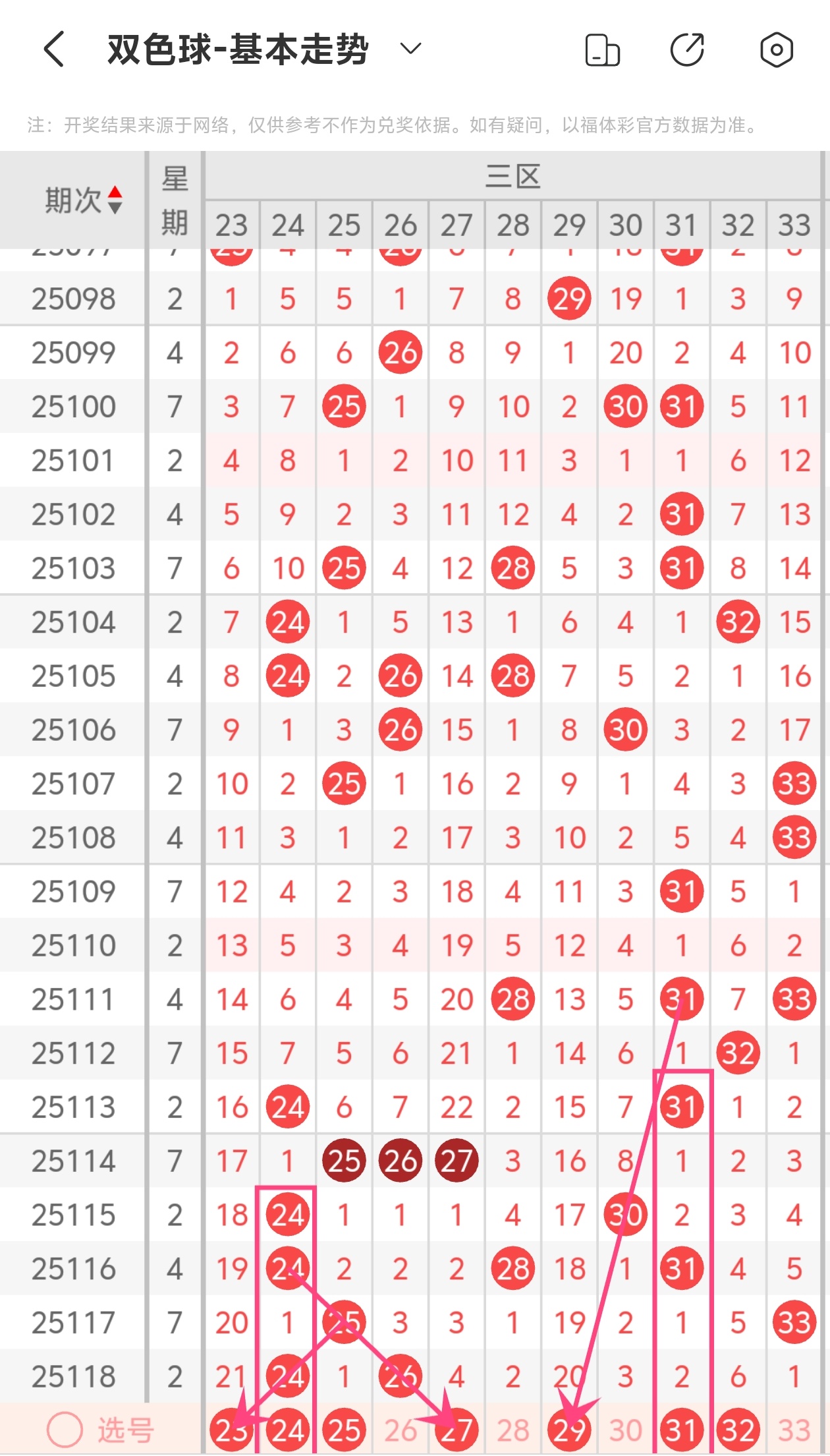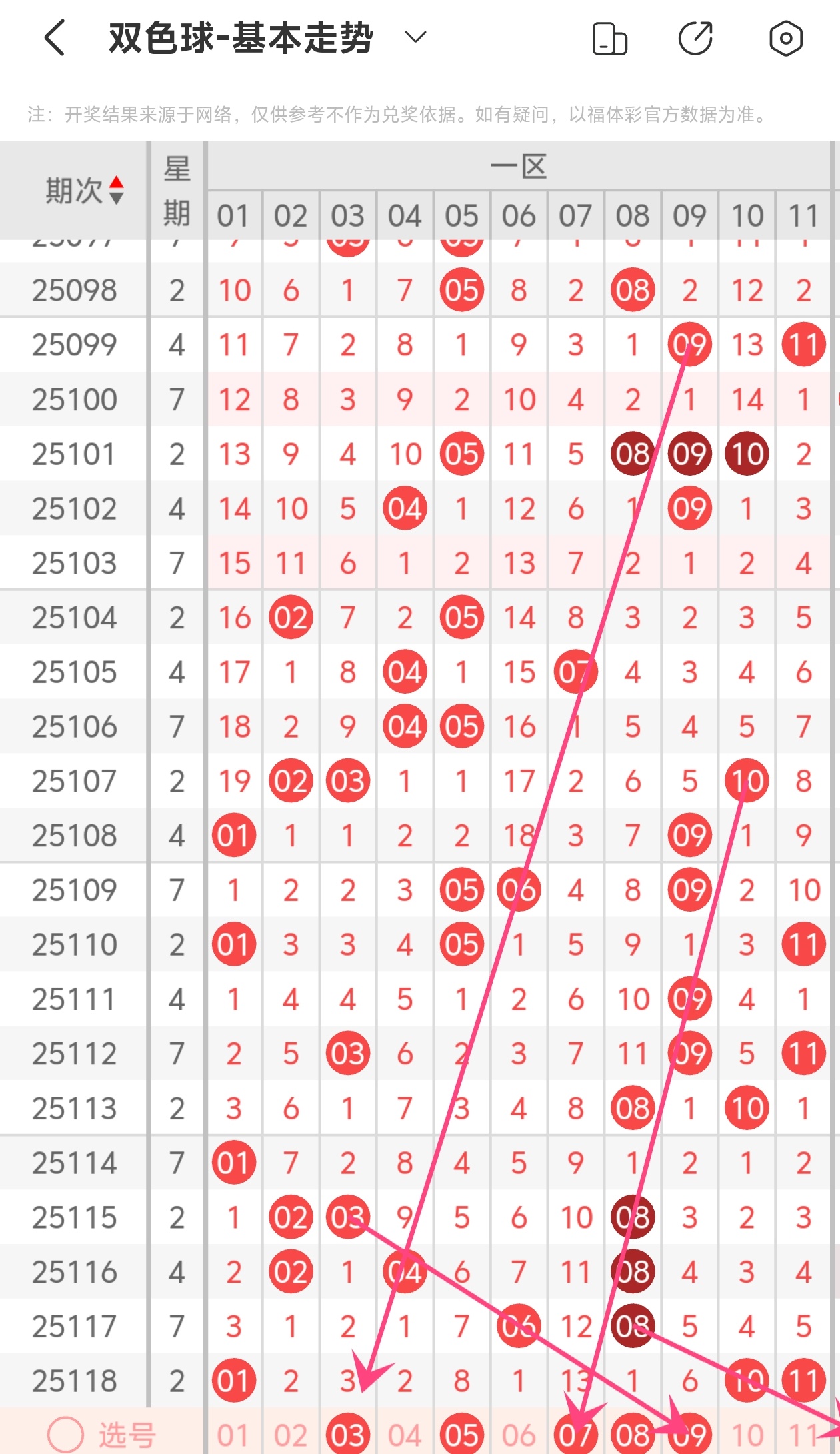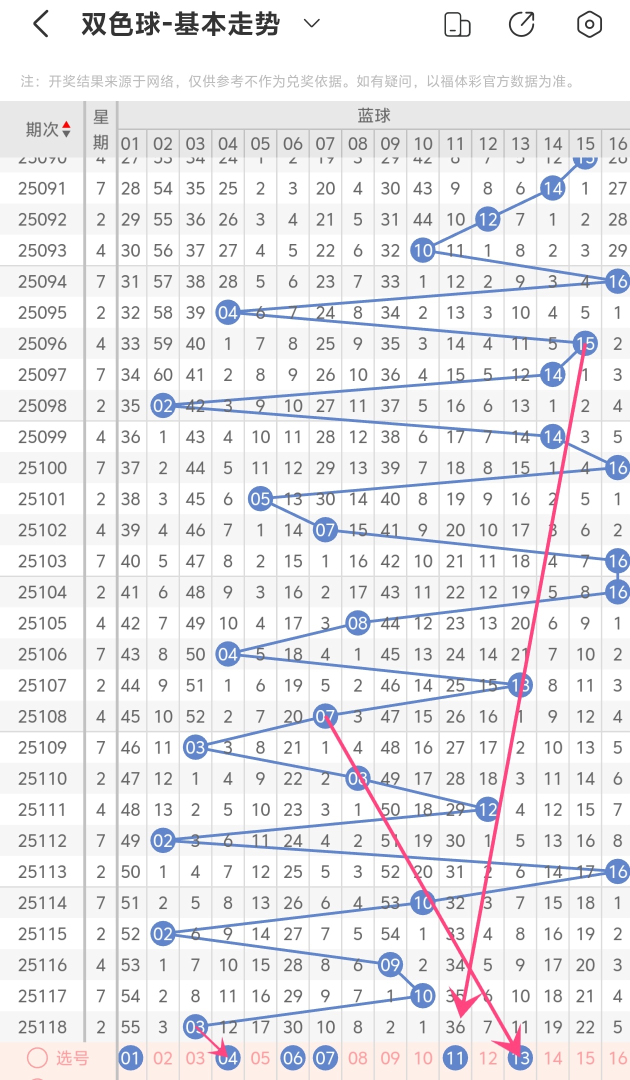下面是我对2025119期福彩双色球的分析和预判,希望通过我的分析能让大家今晚大红!福彩双色球上期开奖号码如下图: