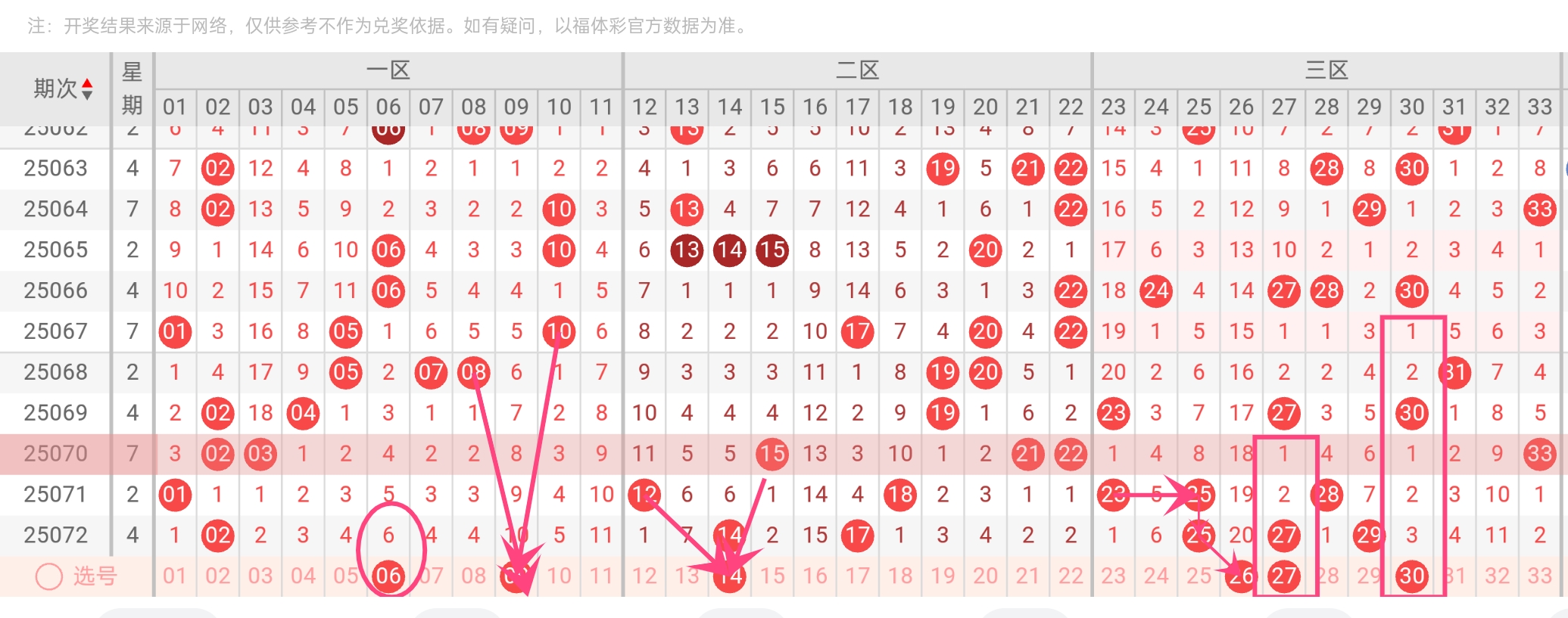 最大号30 - 最小号06 = 24,完美命中23-27区间。24跨度平衡分散性(如2025058期跨度18过密),规避近期小号扎堆风险。