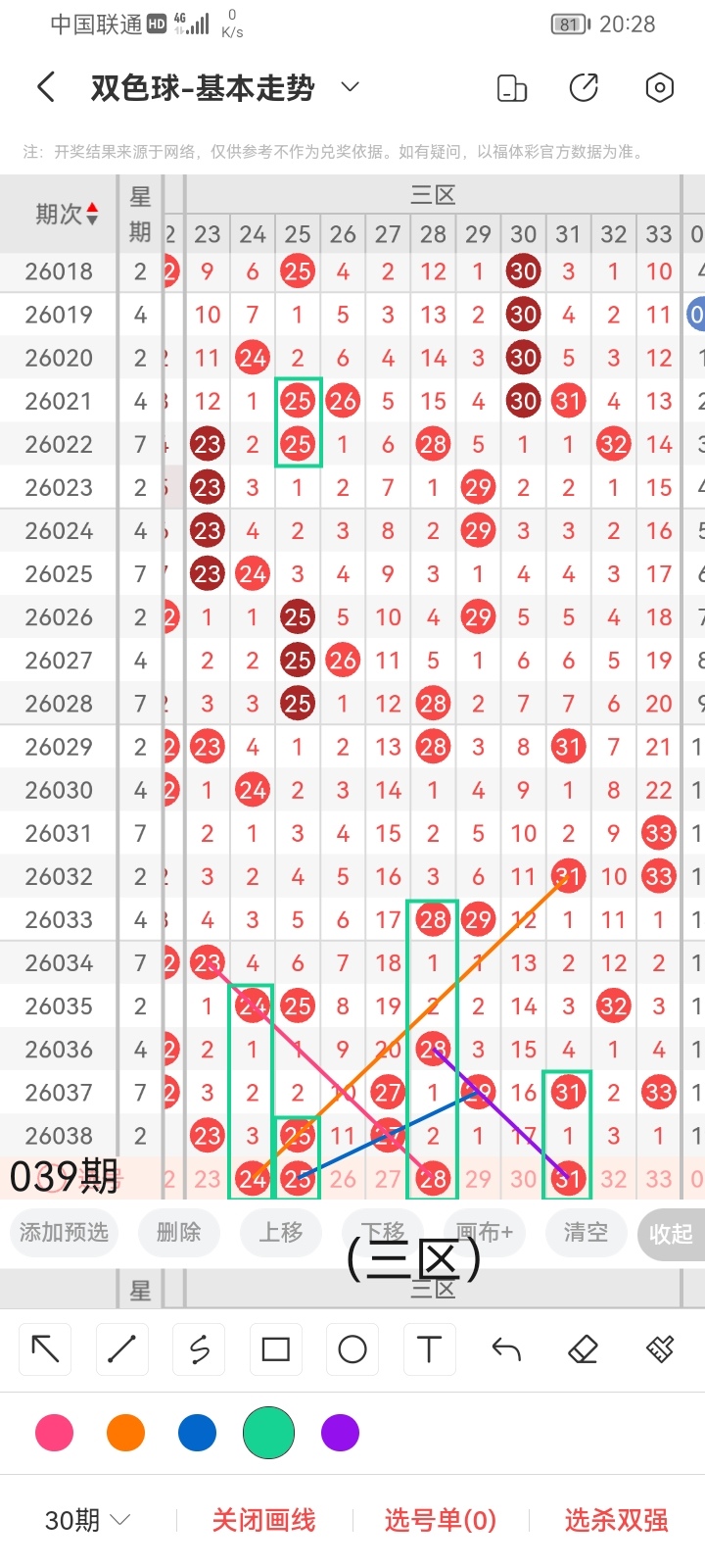 通过以上对上期的简单回顾,下面进入双色球第2026039期(下面简称本期)的选号分析: