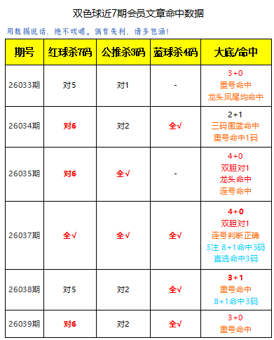 茯苓子双色球26040期:综合分析+杀号推荐!上期杀7码对6,大底命中3+0