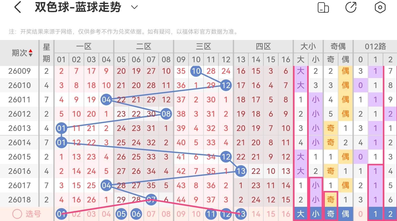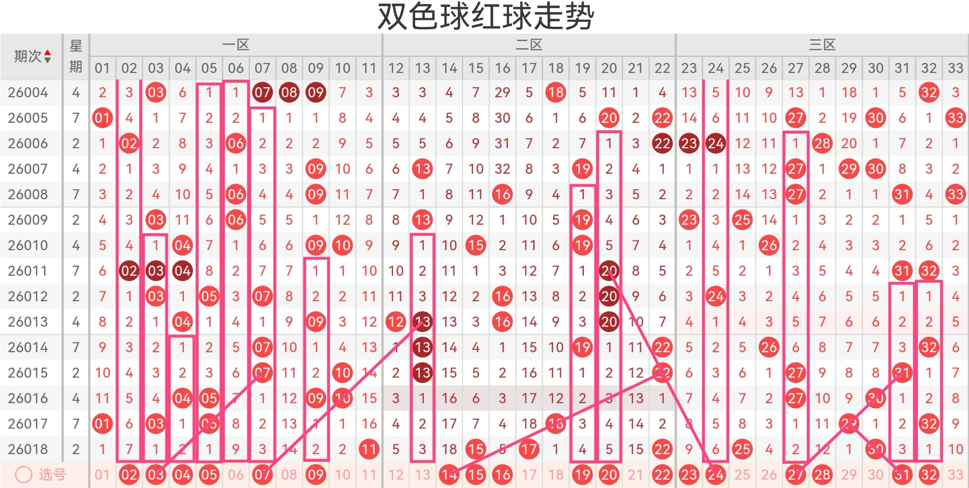 双色球第26019期基本走势分析 (上期会员文章凤尾中,一码蓝中,大底中6+1)