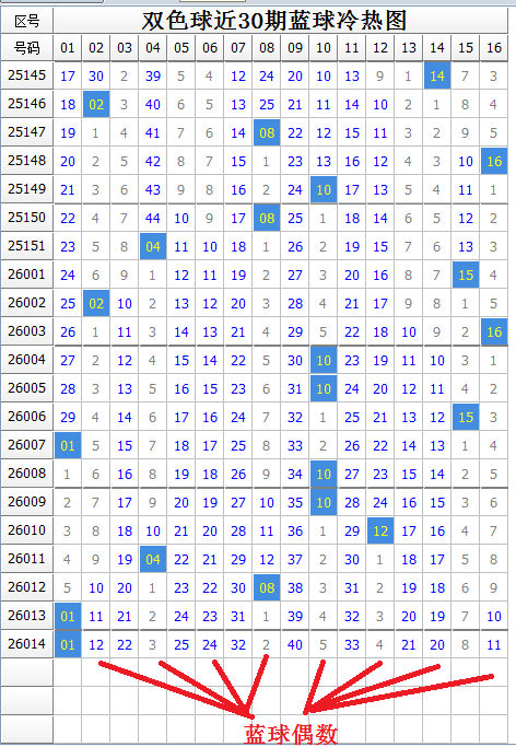 蓝球本期有热蓝6枚,冷蓝10枚,蓝球冷码数量稍多。上期开出热蓝,由于近期蓝球冷热交替开出规律不明显,本期蓝球热码冷热难定。