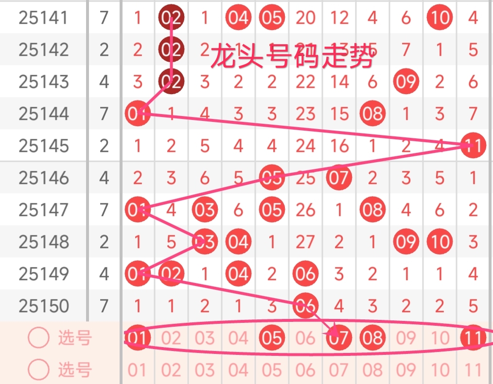 上期龙头号码为06,振幅上升了5点,开出偶数号码。从近期龙头号码走势来看,近期龙头号码波动频繁。上期龙头号码为06,为偶数号码。观察近期龙头号码,呈现出一定的交替规律,红一区大小号轮流出现。上期龙头为06,属于红一区中间位置。预计本期龙头号码可能会有所上升。预计龙头号码在01 - 11之间。本期龙头号码还需关注遗漏值较高的号码,本期有望龙头号码热出的区域。综合考虑,本期龙头号码可重点关注01、05、07、08、11。