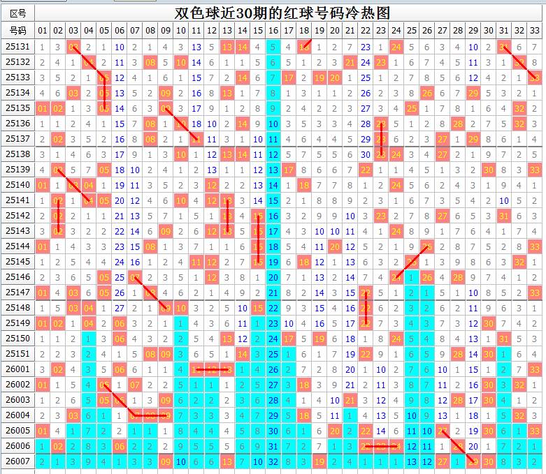 以下是双色球最近7期(26001-26007期)的推荐情况,更多期数的请参考往期文章: