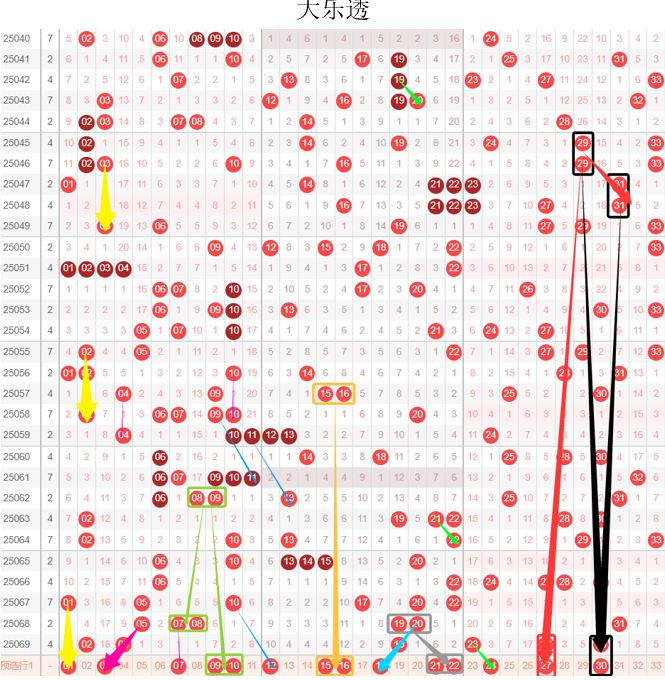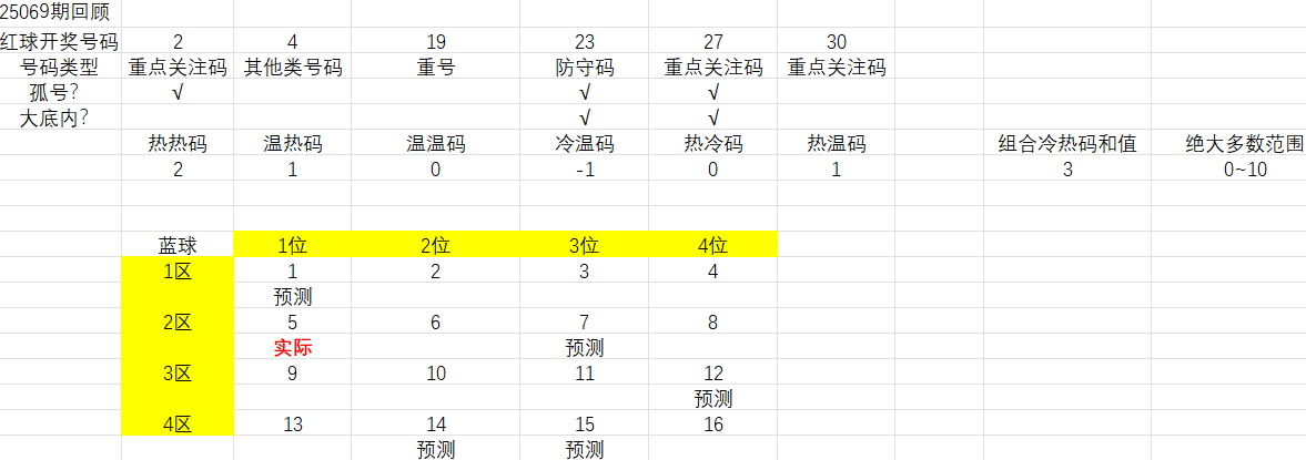 公式:【重号0~2个+重点关注码1~5个+防守码(备选)0~4个+其他类号码0~3个】,孤号2~4个,也是经过了两百多期的验证,通用率95%以上,可以和上面的组合冷温热码范围配合着选,如果有号码属于两种类型,那两个类型号码都计数一次