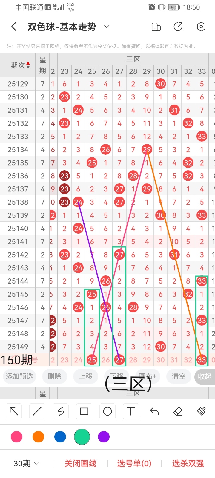 通过以上对上期的简单回顾,下面进入双色球第2025150期(下面简称本期)的选号分析: