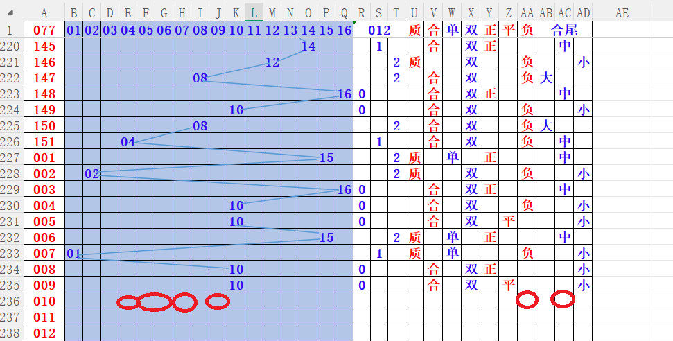 如上图4,012路分析012路,本期重点10路。重点     04 05 06 07 09