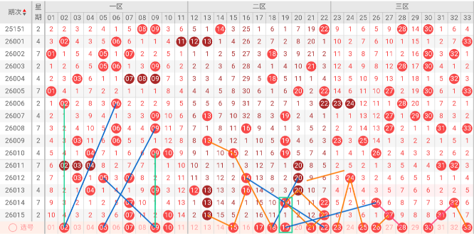 根据以上特点,我们对双色球第26016期进行如下分析:
