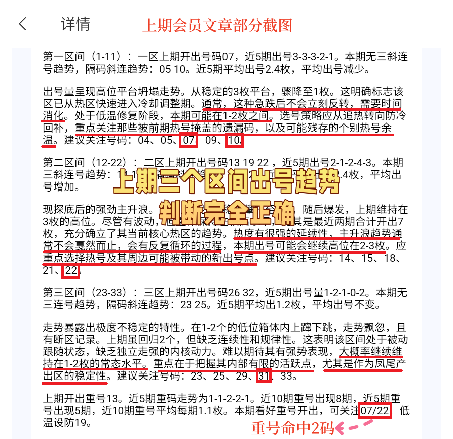 会员文章每个区间给出更详细的分析,说明整体走势的最新趋势,重号和连号均有推荐。