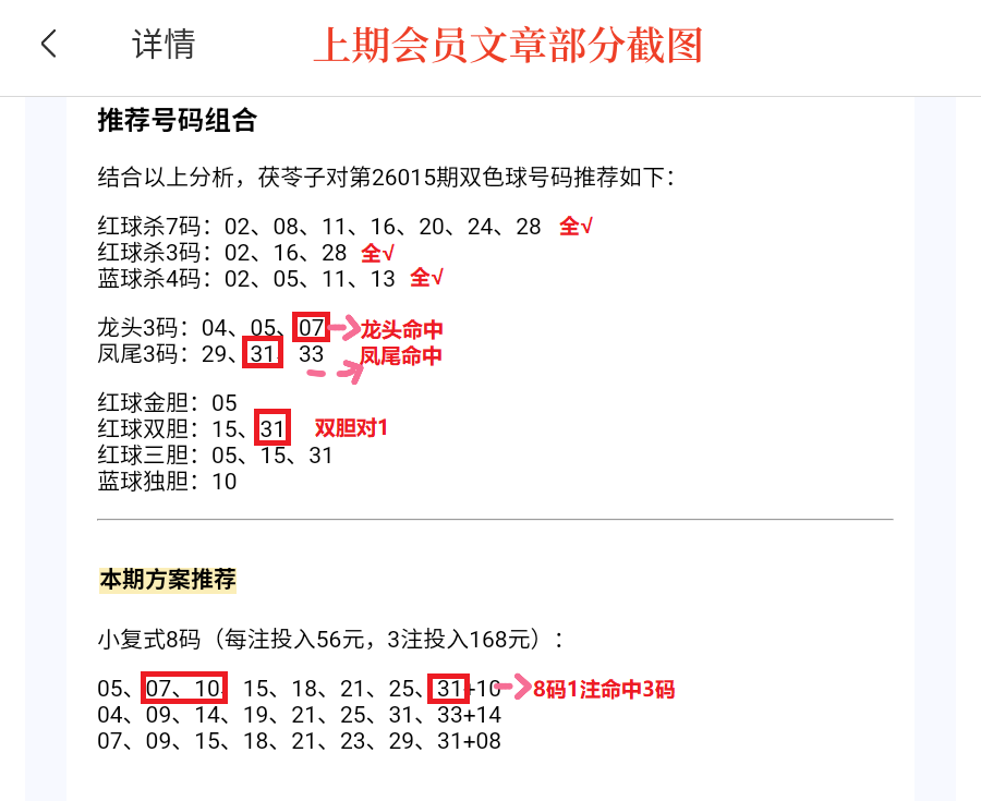 *注:龙头,凤尾,胆码推荐均为会员文章专属。