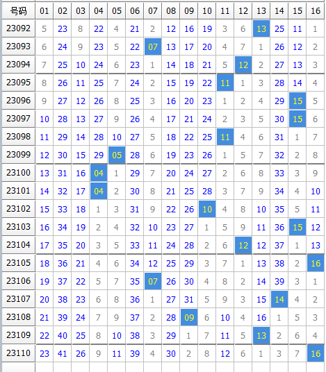 (数字为遗漏期数,蓝色标记的为遗漏超过10期的大冷号)