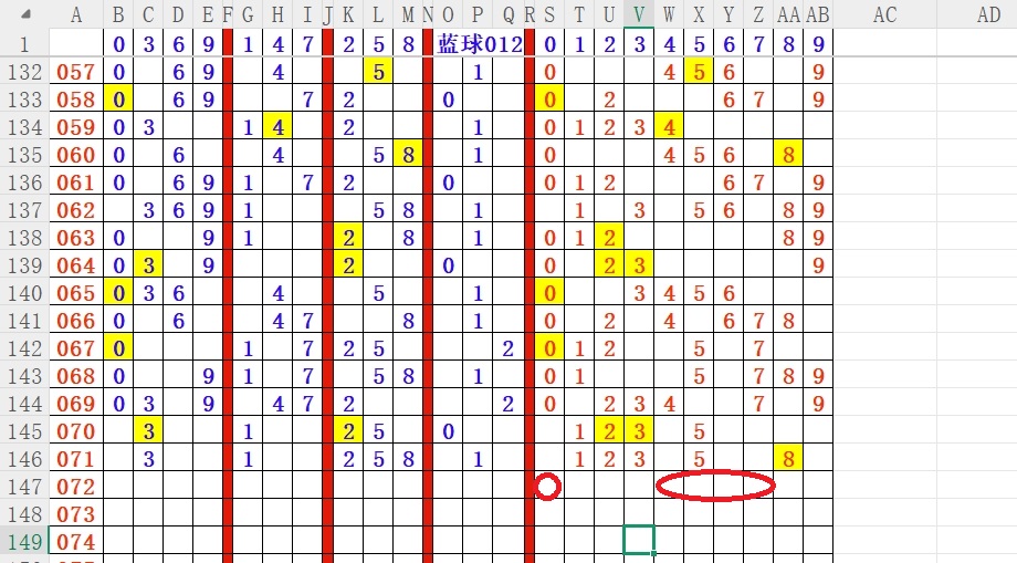 如上图4,012路分析012路,本期重点10路。重点 03 04 05 08 09