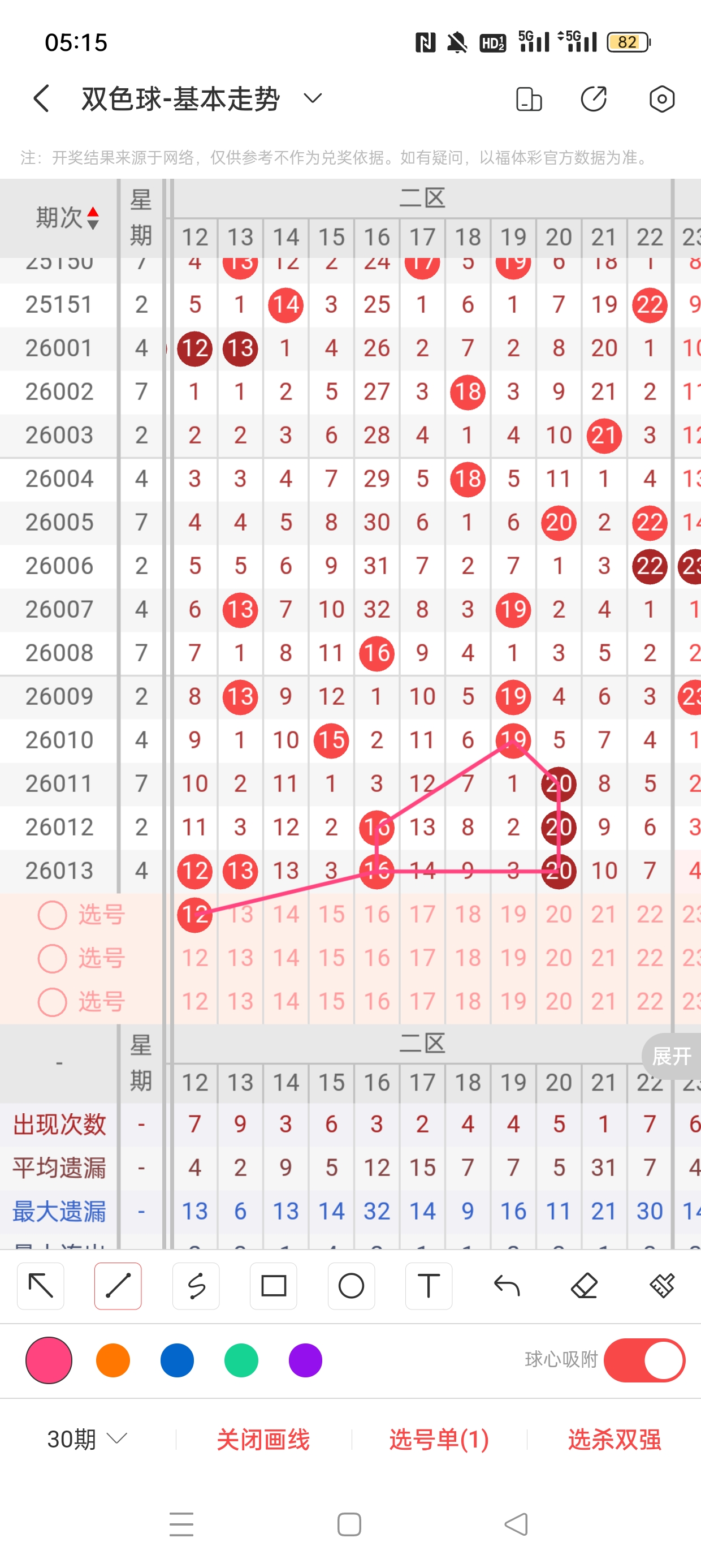 26013期开奖结果:4、9、12、13、16、20+1,奇偶比2:4,大小比1:5,和值63,012路231,邻孤传0邻4孤2传,同尾号无,传号16、20,连号12、13。总结完毕,下面开始本期分析。