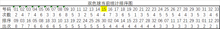 红球15码大底统计顺序:09,03,16,05,08,18,33,13,19,24,25,26,30,02,14