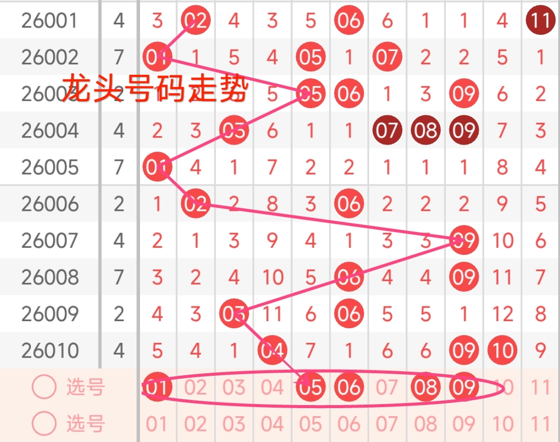 上期龙头号码为03,振幅上升了1点,开出奇数号码。从近期龙头号码走势来看,近期龙头号码波动频繁。上期龙头号码为04。根据最近多期龙头号码的观察,近期龙头号码多为小数号码开出,预计本期龙头号码会有在较小号码区域继续出现的趋势。预计本期龙头号码关注01 - 08区间。本期龙头号码还需关注遗漏值较高的号码,本期有望龙头号码热出的区域。综合考虑,本期龙头号码可重点关注01、05、06、08、09。