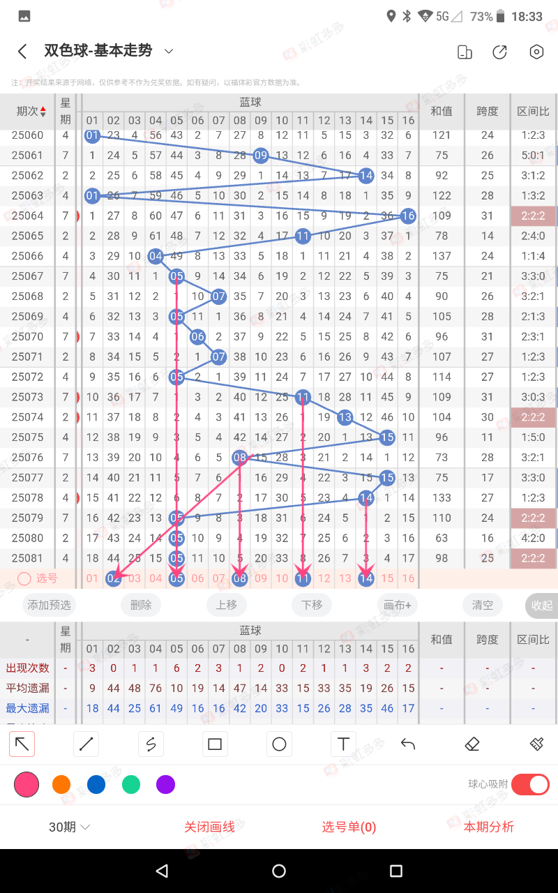 比如,081期蓝5号,080期蓝05号(属2路)那我们这期要杀的蓝号就是5+2=7大16减16,7为本期杀号,008期错,039期-040期,060,074-075期错,防三连错