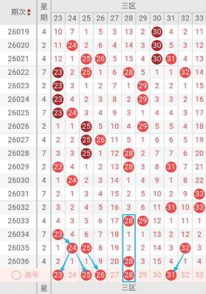 双色球三区(23-33)