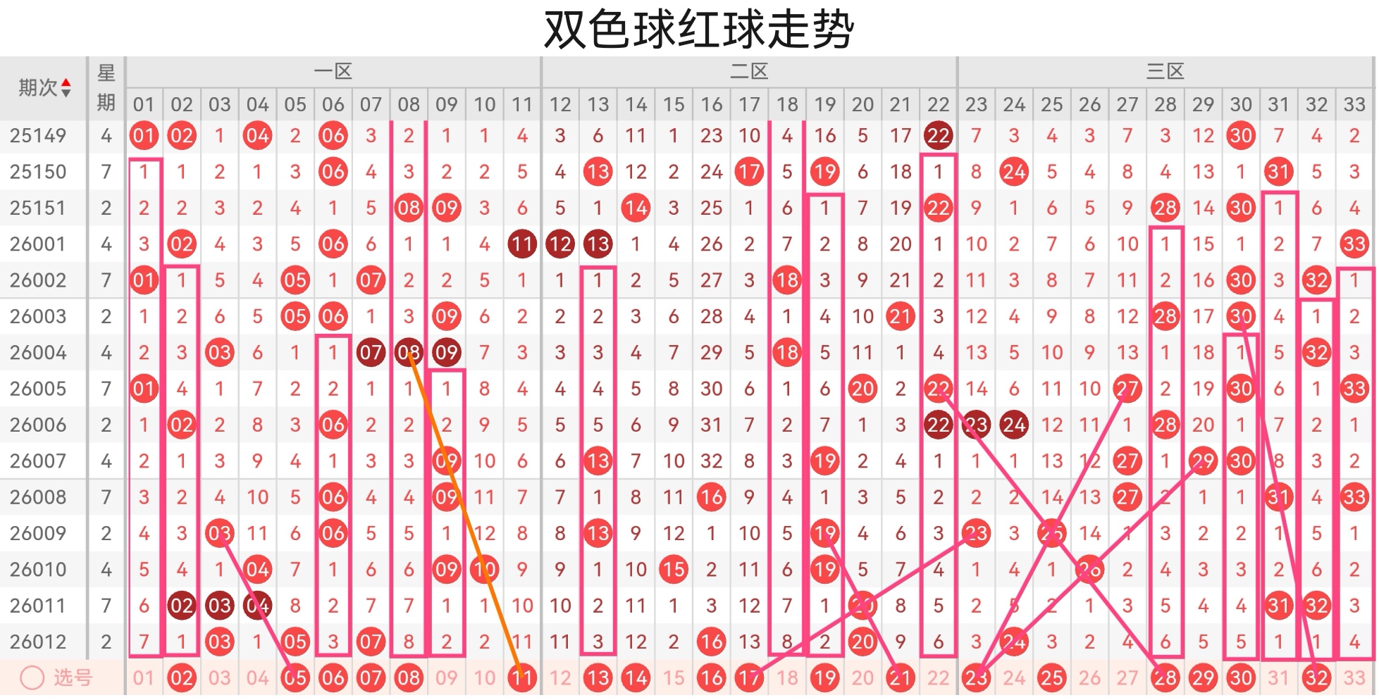 双色球26013基本走势分析如下