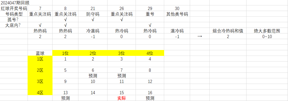公式:重号0~2个+重点关注码1~5个+防守码(备选)0~4个+其他类号码0~3个】,孤号2~4个,也是经过了两百多期的验证,通用率95%以上,可以和上面的组合冷温热码范围配合着选,如果有号码属于两种类型,那两个类型号码都计数一次