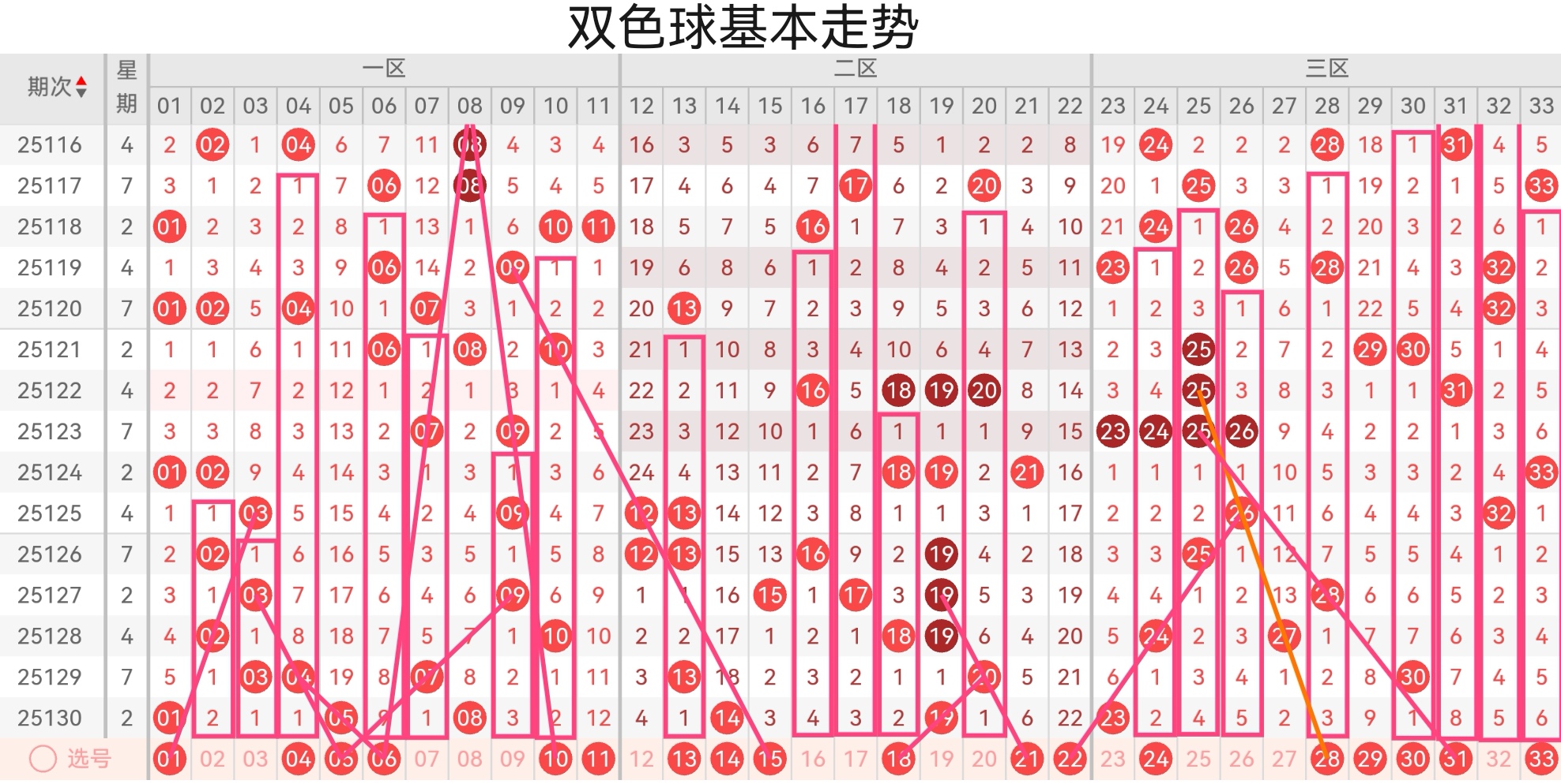 双色球第25131期基本走势分析 本期注意防三区号码的回补走热