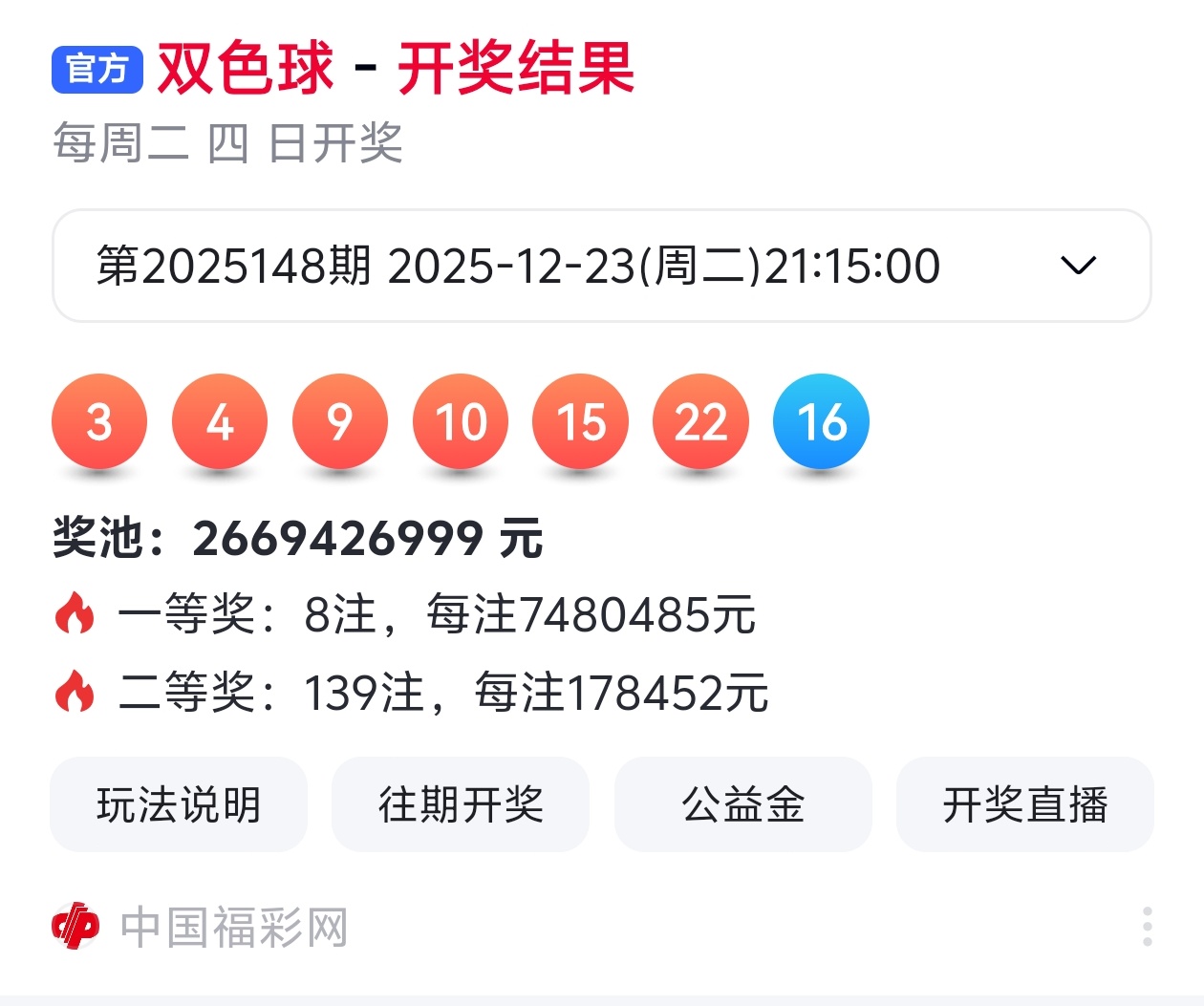 下面是我对2025149期福彩双色球的分析和预判,希望通过我的分析能让大家今晚大红!福彩双色球上期开奖号码如下图:
