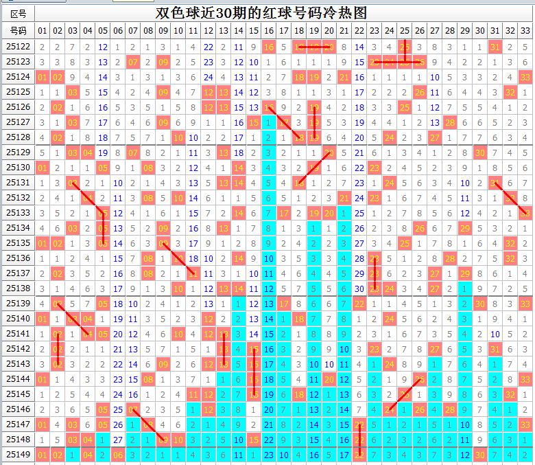 以下是双色球最近7期(25143-25149期)的推荐情况,更多期数的请参考往期文章: