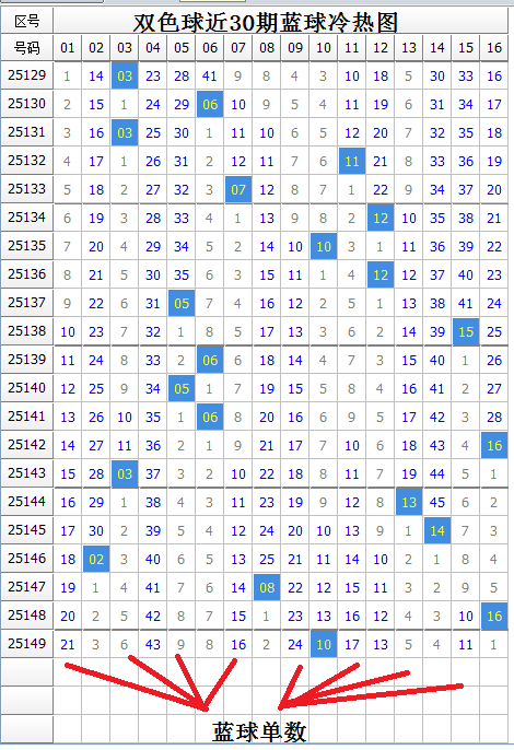 蓝球本期有热蓝9枚,冷蓝7枚,蓝球热码数量稍多。上期开出冷蓝,由于近期蓝球冷热交替开出规律不明显,本期蓝球冷热难定。