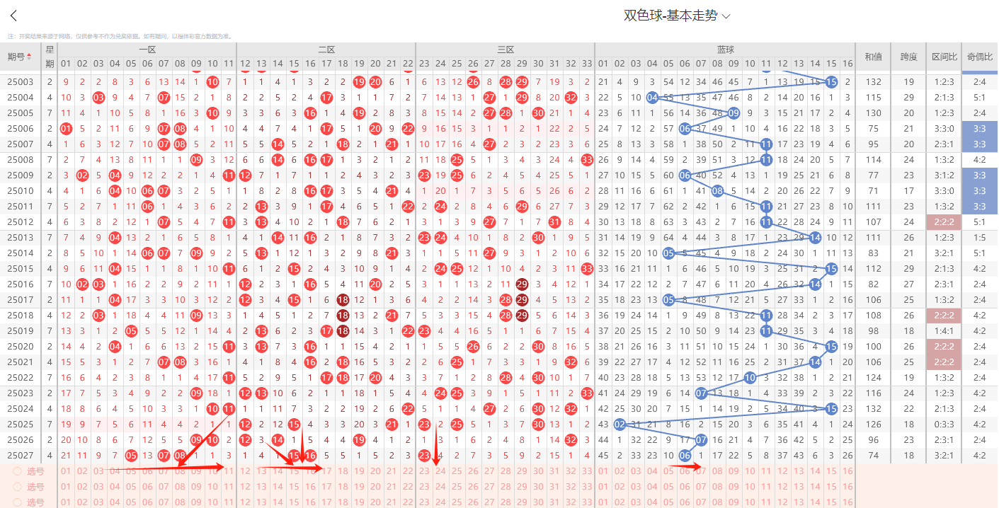2、蓝球:上期开出小号偶数06,从走势上号码整体分布结合折线运行轨迹,本期大号有开出的趋势。本期蓝球重点关注01 04 10 11 15。有关更多详细选号思路以及号码组合搭配 我们11:05~12:30点有选号思路详细解析的直播节目欢迎大家前来一起探讨交流。