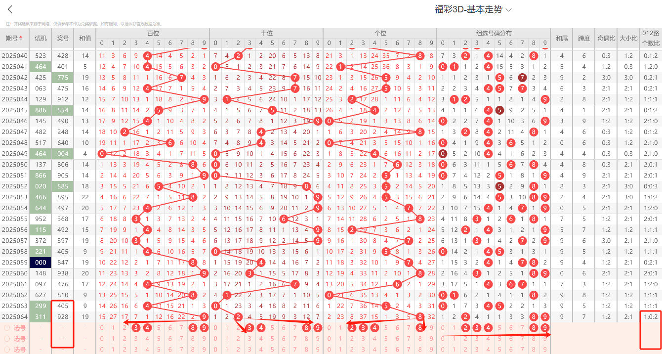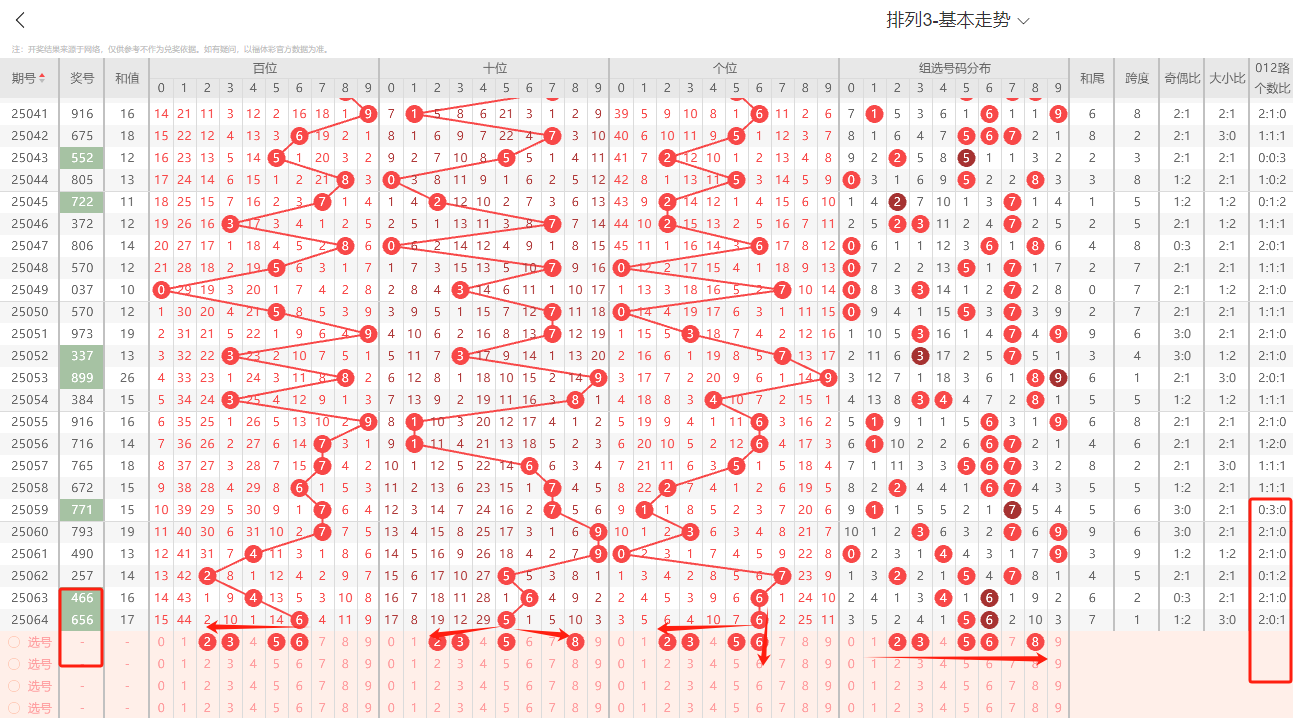 ①百位:上期开出大号偶数6号,在历史开奖记录中显示一般正常的奇偶周期平均在1~3期为普遍现象,偶数连续开出4期上期为0路号码,依据奇偶以及012路周期性规律的转变特征点即本期0路号码有开出的趋势2路号码注意预防。