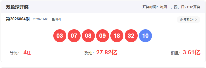 开奖号码:03 07 08 09 18 32-10