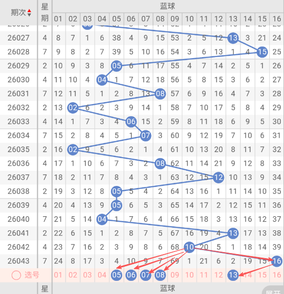 蓝球:05,06,07,08,13