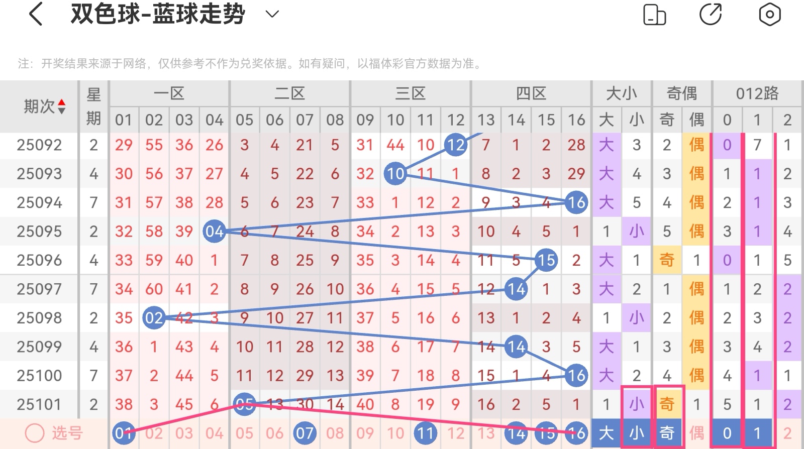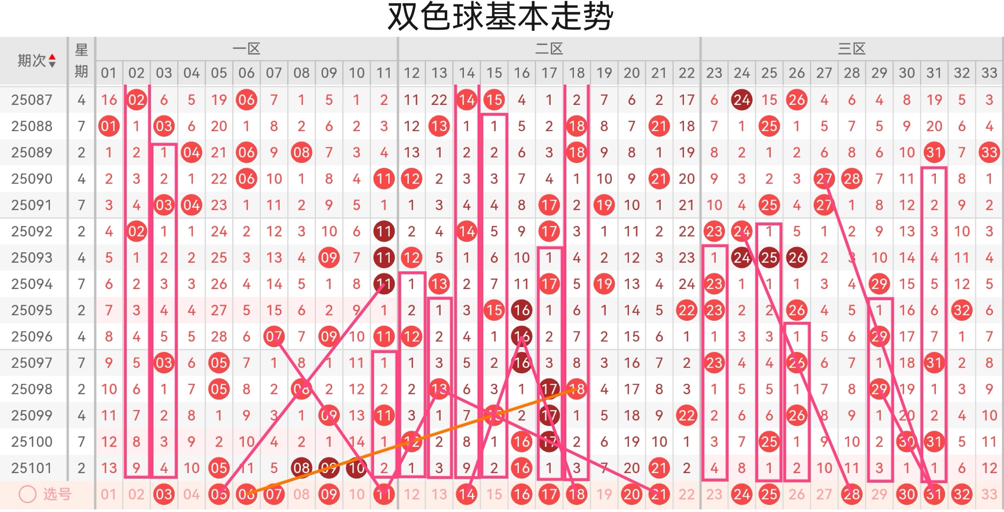 双色球第25102期基本走势分析(上期胆码二中一,三码围蓝正确,杀八蓝正确)