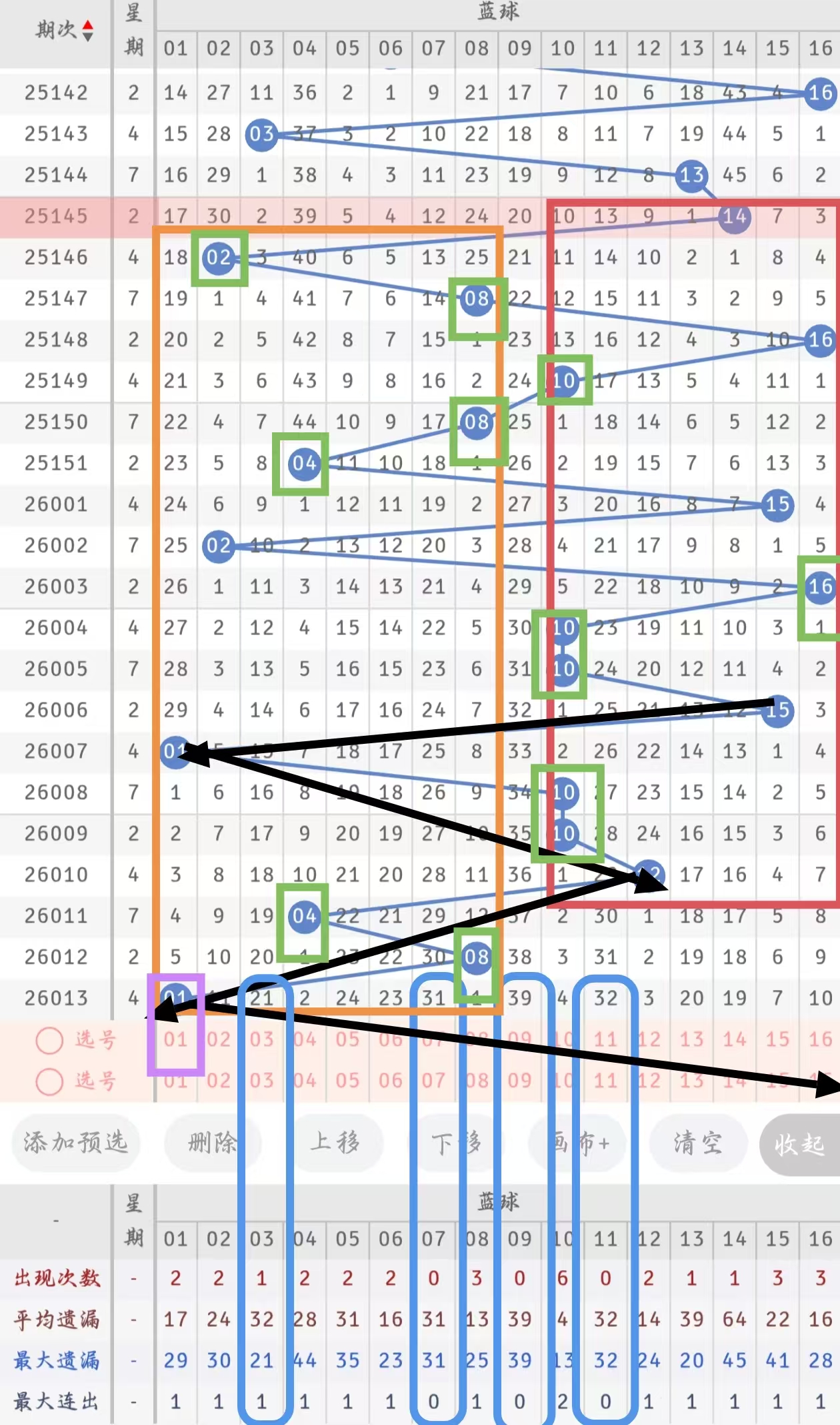 邻号:与上期开奖号相邻的号码,例如:上期开出17则邻号16、18