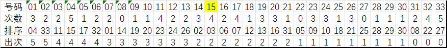红球15码大底统计顺序:04,33,11,15,32,01,14,19,20,23,24,26,02,03,06