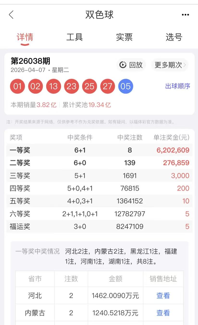 2026038期双色球开奖回顾: