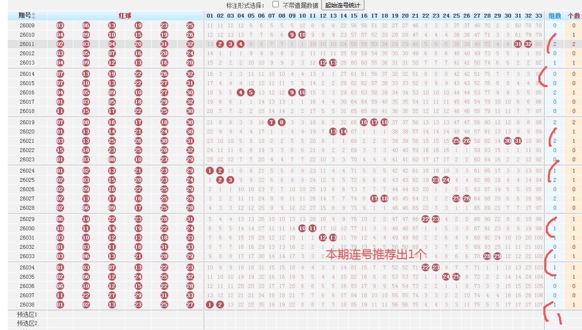 一、2026039期双色球条件分析(重号、连号、邻号、区间比):