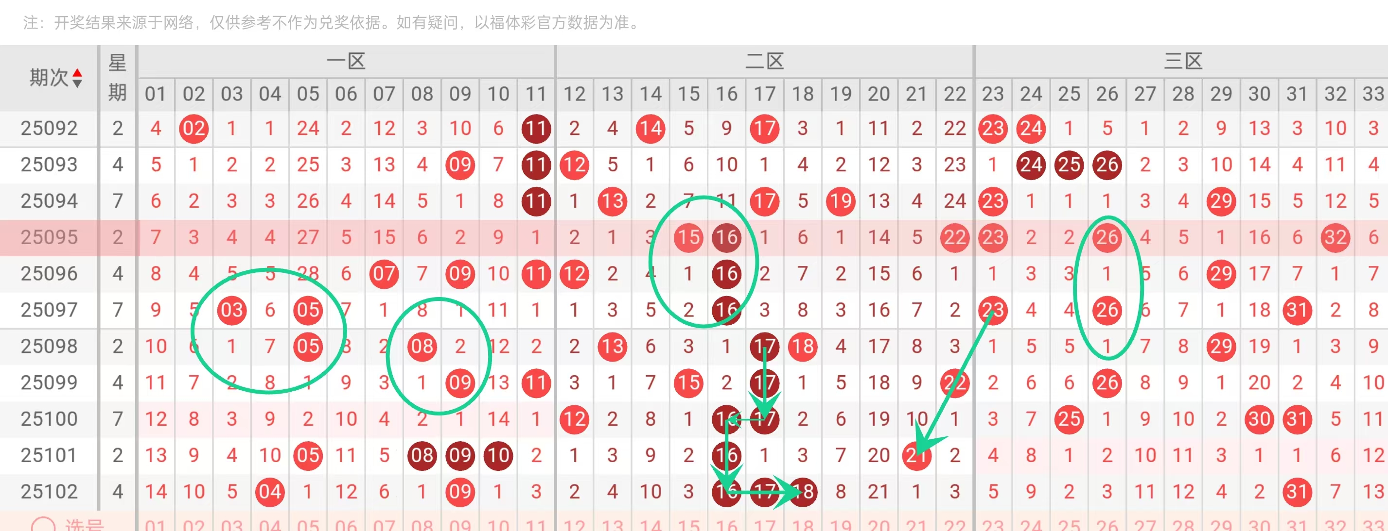 33:作为最大号,其出现频率虽不极低(约6次),但近期(2025年)出现次数明显减少,尤其在2025年开奖中仅出现2次,热度已退。