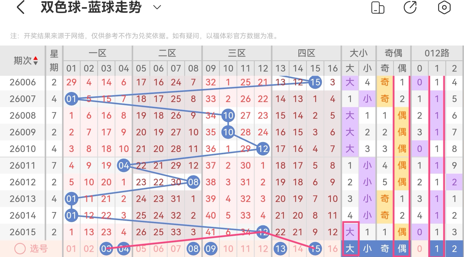 双色球第26016期基本走势分析 (上期会员文章杀八蓝正确)
