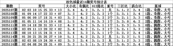 上期奇偶比为1:5,偶数较热,近10期奇偶比为33:27,奇数红球活跃,其中奇数红球热